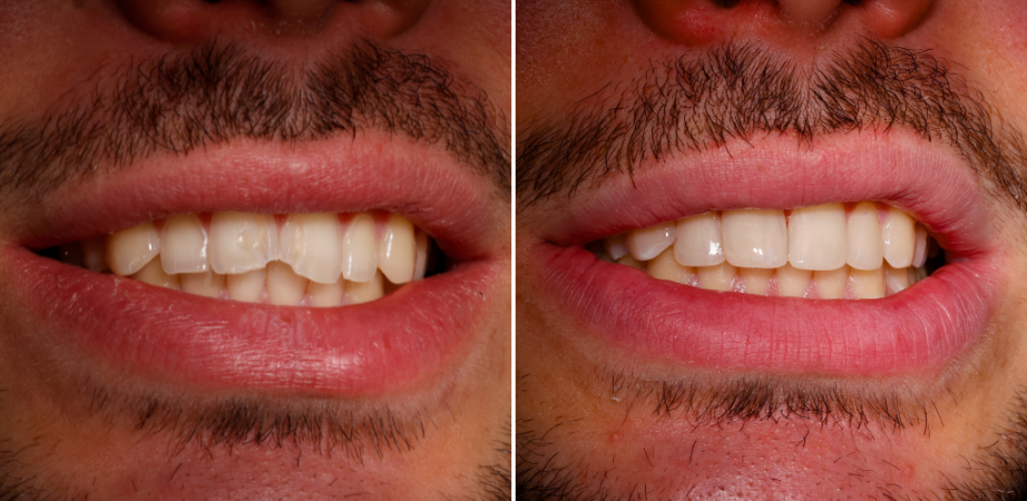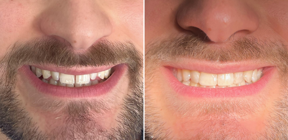 Dr. Lelièvre used composite treatments to close the gap between the two front teeth.